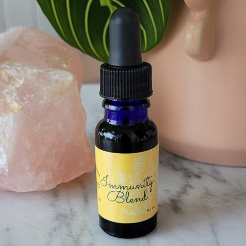 A blend of essential oils & flower essences chosen for their ability to support the body’s immune response when exposed to stressful conditions and communicable disease.