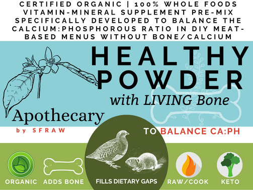 HEALTHY POWDER WITH LIVING BONE includes additional calcium and is intended to balance the ca:ph ratio in a home-prepared boneless meat+organ based meals.