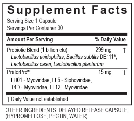 - The PreforPro® prebiotic promotes the growth of our probiotic blend of Bacillus subtilis, Lactobacillus acidophilus, Lactobacillus casei, and Lactobacillus plantarum